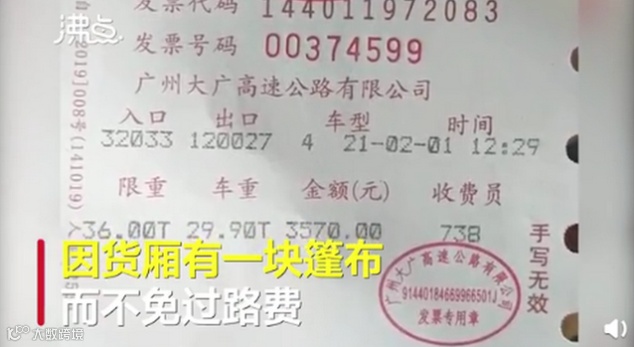 因为在运输17吨苹果的车厢里放了一卷40斤的备用篷布,被收取3570元的过路费,显然不太合理,难怪货车司机委屈。然而,网络上也有不少声音认为,高速收费员严格执行政策没有问题。如果执法不严,产生破窗效应,一些运输公司可能会打起“绿色通道”政策的擦边球,故意逃费。