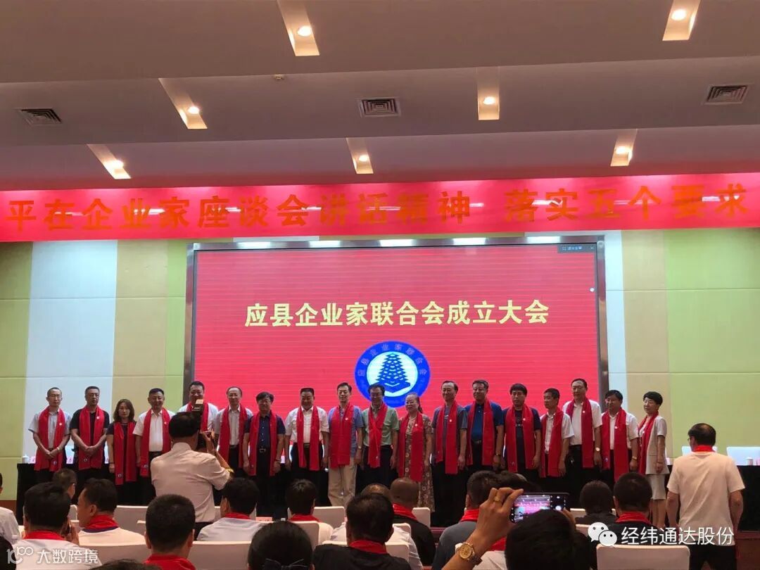 山西经纬通达股份有限公司董事长冉金红同志被一致选举为第一届应县企业家联合会会长,充分证明了冉金红同志在全县企业家心目中的威信和地位。衷心祝愿应县企业家联合会鸿图大展,祝山西经纬通达股份有限公司前程似锦!
