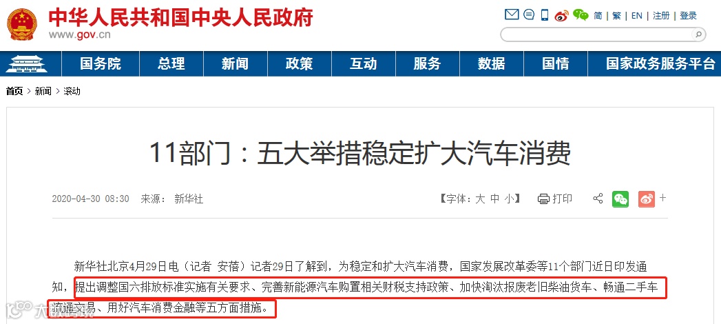 2020年7月1日前生产、进口的国五排放标准轻型汽车,2021年1月1日前允许在目前尚未实施国六排放标准的地区销售和注册登记。未经批准,各地不得提前实施国家确定的汽车排放标准。同时,将新能源汽车购置补贴政策延续至2022年底。