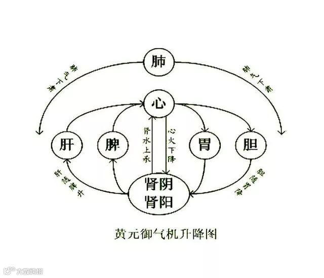 在黄元御的五行观中五行不再处于平等的生克关系,而是以土为中枢、四气周流的模式。