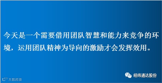 而激励要以团队精神为导向。今天的奖金已经不再具有长期激励效应,股权计划和年薪制度在更多的时候表现为一个必需的条件而不是激励。今天是一个需要借用团队智慧和能力来竞争的环境,运用以团队精神为导向的激励才会发挥效用。
