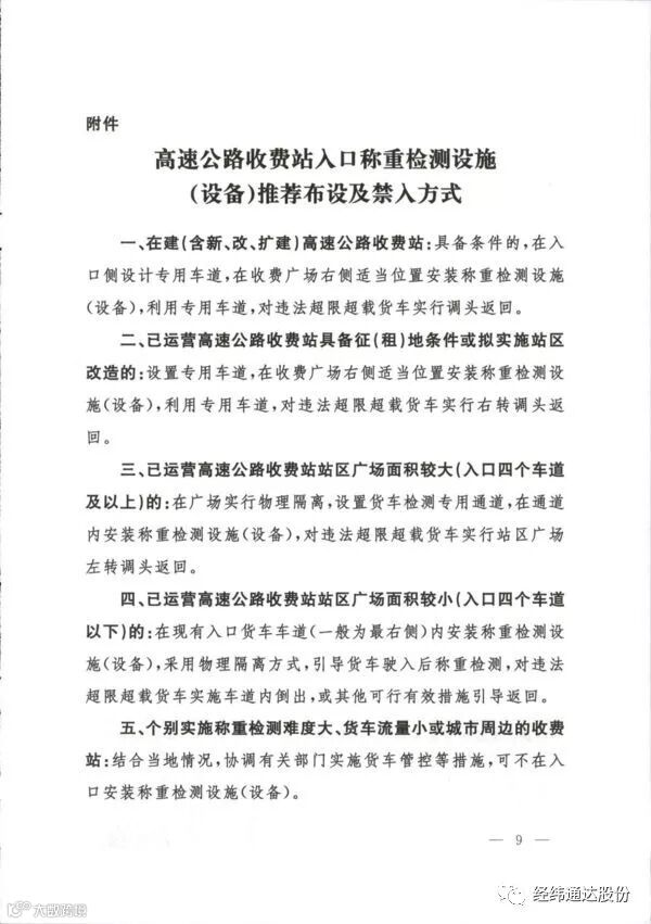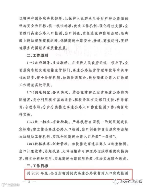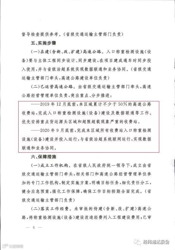 1、19年12月底,区域内50%以上高速入口完成称重设备安装;