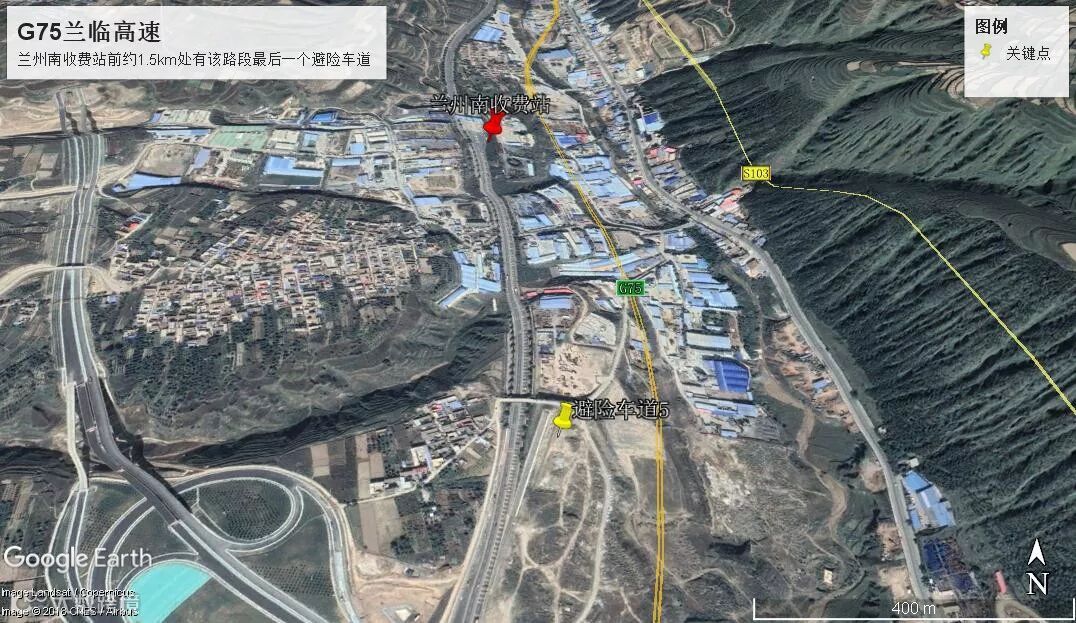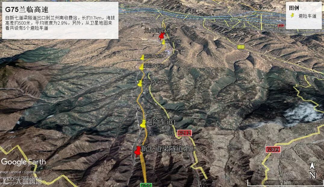 事故路段所在的兰临高速公路位于兰州市七里河区以南,为全立交、全封闭、双向四车道高速公路。新七道梁隧道为全路段最高点,海拔2612米,隧道出口以北至兰州南收费站,为连续17公里的下坡,海拔落差约500米,平均坡度约2.9%。