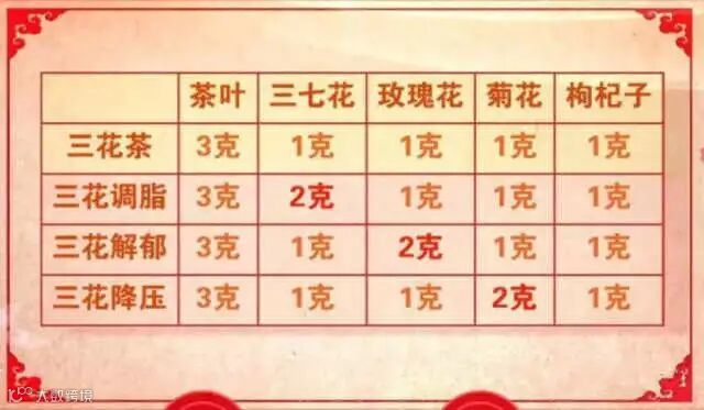 茶叶可根据个人喜好,选择绿茶、红茶、花茶、普洱茶均可。将三花与茶叶共泡,代替每日的茶水,连服一个月即可收到很好的效果。
