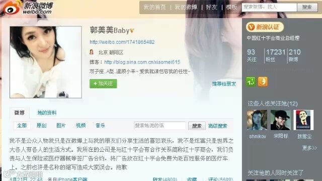 没想到,一句玩笑竟然变成真。郭美美说:“那天我在家没事干,玩电脑微博的时候,突然想起他说的这句话,我就是出于一种虚荣心吧,那种挺无知的心理,也不知道红十字会是一个这么庞大的慈善机构,更没想到会有这么严重的后果。”据郭美美交代,她就把她的演员歌手认证改成了红十字会商业总经理。过了两三个月以后,这个事情就被一个网友发了微博,并且一夜之间被吵得沸沸扬扬了。