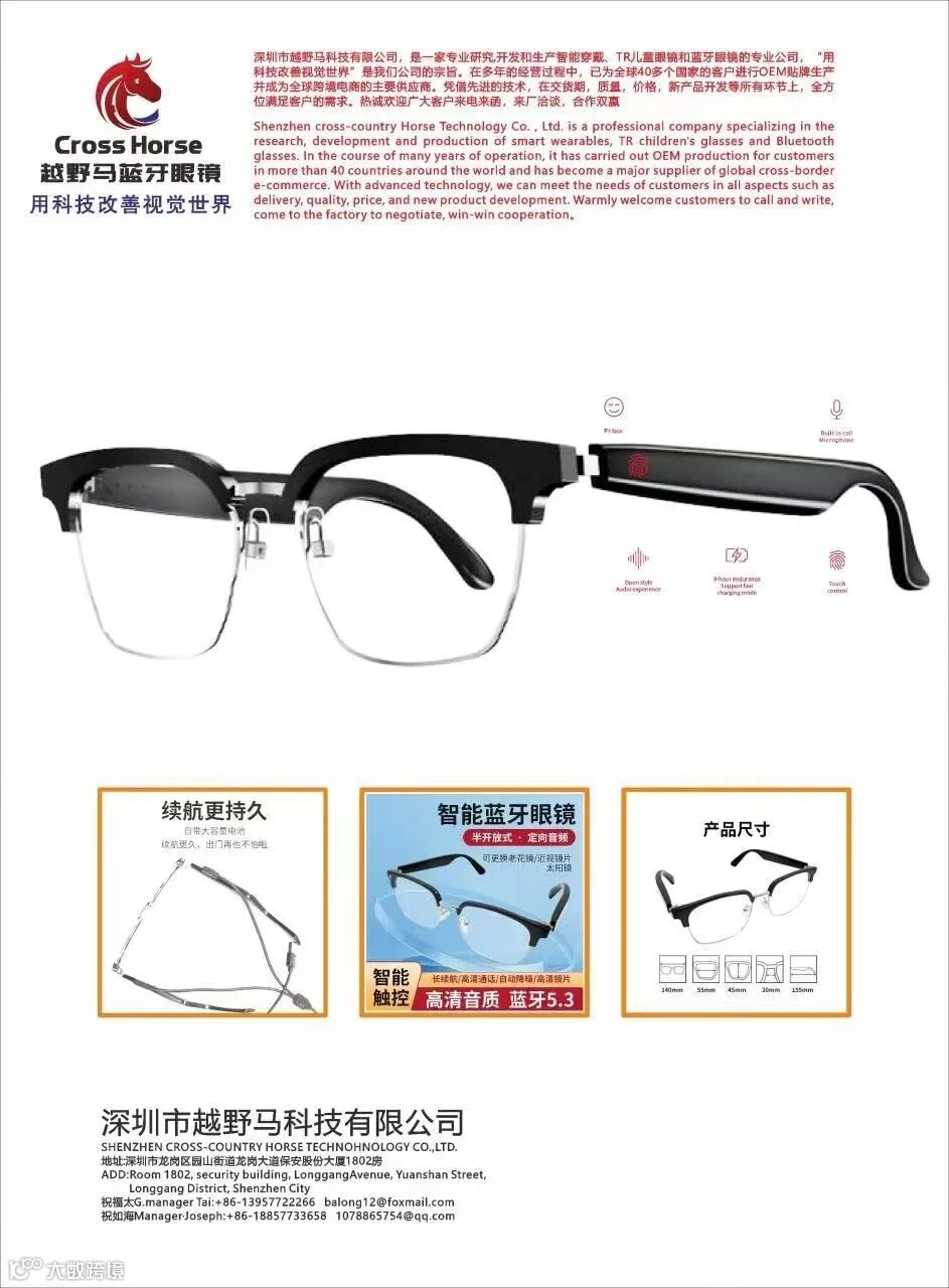 深圳市越野马科技有限公司自创立以来,便锚定智能穿戴设备、TR儿童眼镜以及蓝牙眼镜的研发与生产航道,全速启航,破浪前行。“用科技改善视觉世界”为使命,矢志不渝地探索前沿科技与视觉领域的融合边界,只为将健康、舒适、智能的视觉解决方案呈献于您的眼前。公司汇聚了一批行业精英,组成了一支经验丰富、富有创造力的研发团队,他们秉持科技引领未来的坚定信念,精研每一项技术,雕琢每一款产品,确保我们的每一步都走在智能眼镜领域的创新前沿,以匠心品质和专业服务朝着行业领导者的目标稳步迈进。