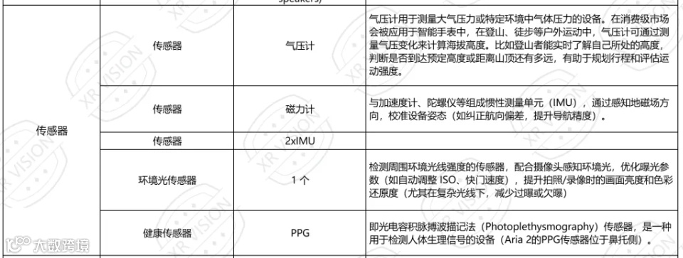▲ Meta Aria 2搭载的运动和健康相关传感器
