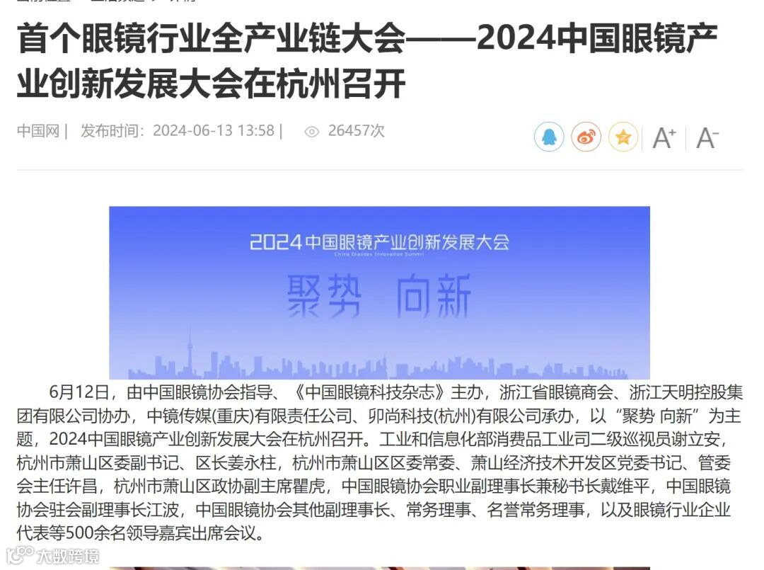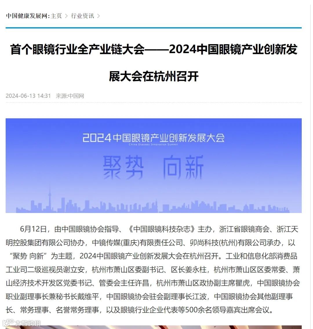 6月13日,由中国眼镜协会指导,《中国眼镜科技杂志》主办,浙江省眼镜商会、浙江天明控股集团有限公司协办,中镜传媒、卯尚科技承办的“2024中国眼镜产业创新发展大会”在杭州圆满落幕。