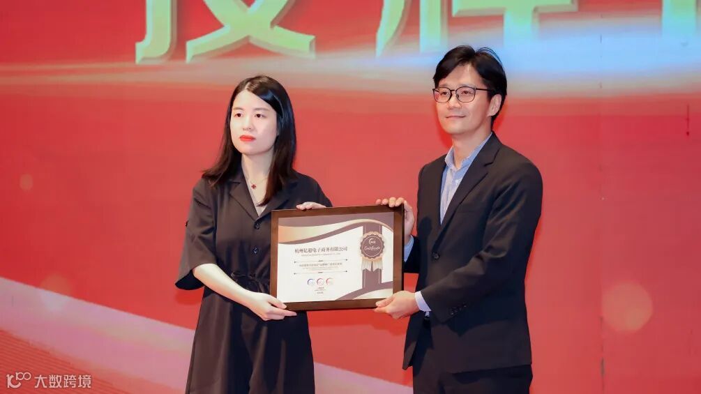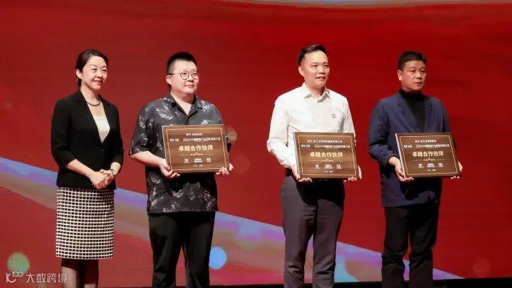 罗萍(左一),何路赟(左二)为优秀合作伙伴颁发奖杯