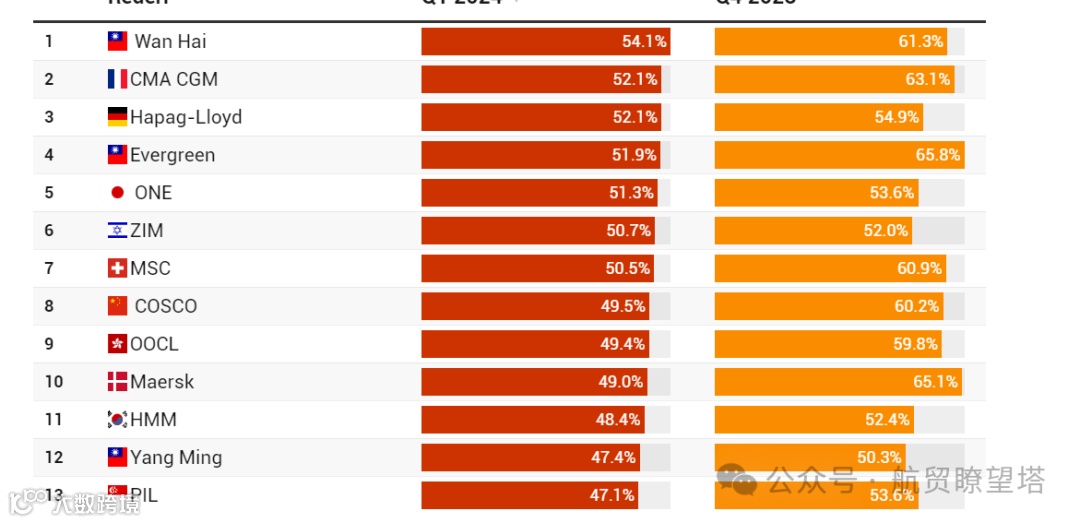 据Sea-Intelligence称,船舶延误问题在1月份尤为明显。随着航运公司适应新形势,它们在2月和3月开始提高准点率。