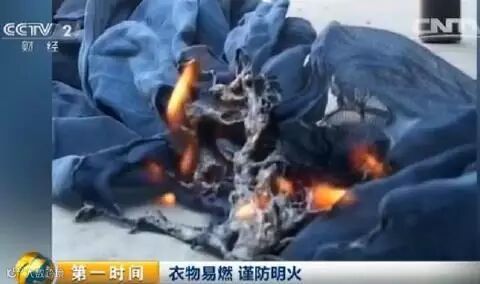 消防队员告诉记者,如果这件羽绒服穿在人身上,接触到含有油脂的皮肤,其燃烧速度可能会更快。