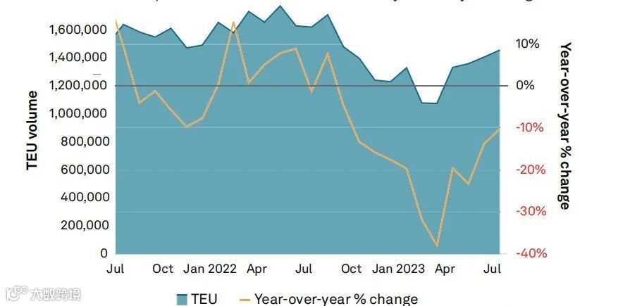 7月份美国从亚洲的进口量达到11个月以来的最高水平