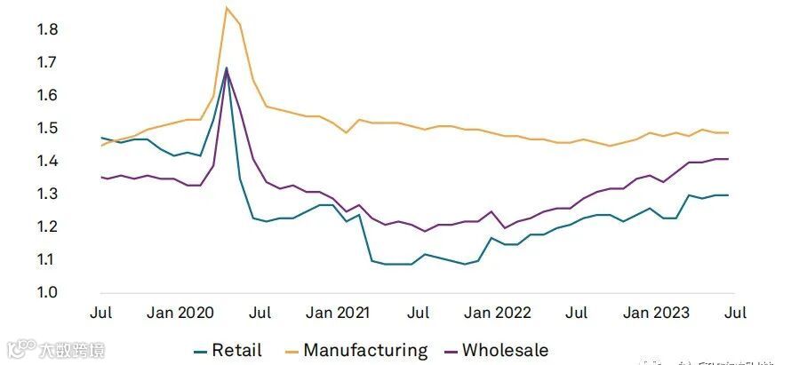 美国企业库存与销售之比