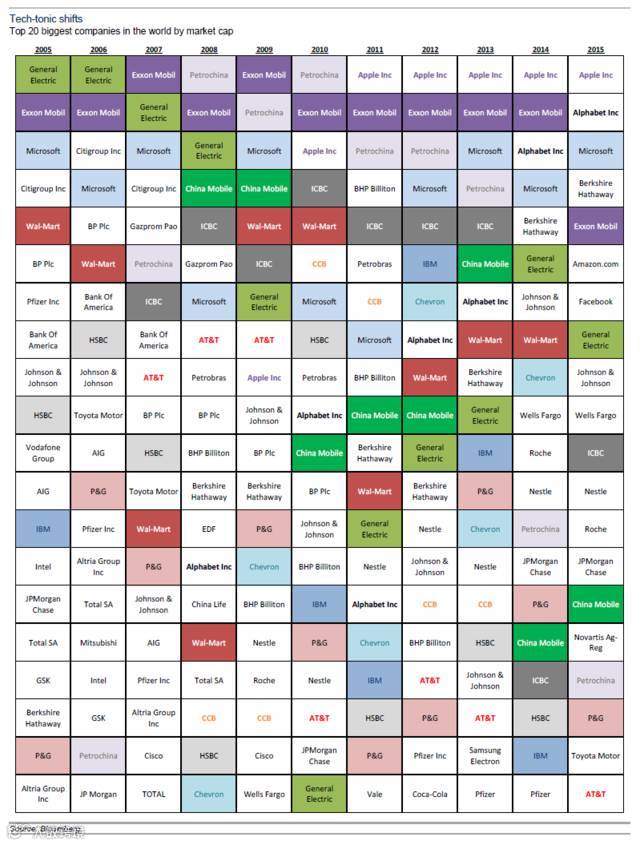 再看看2005年和2015年的公司市值变化,一切更加明朗。
