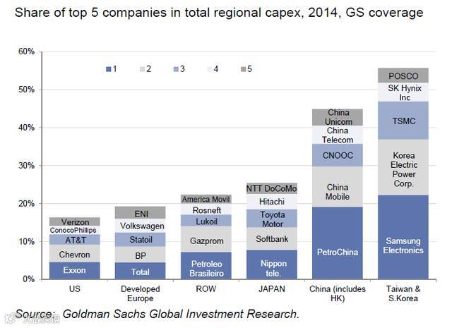 有意思的是,2014年在相关支出方面,能源类公司几乎“一统江山”。