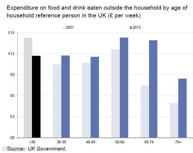 在英国,年轻人和老一辈人在出门吃饭上有不同的见解。