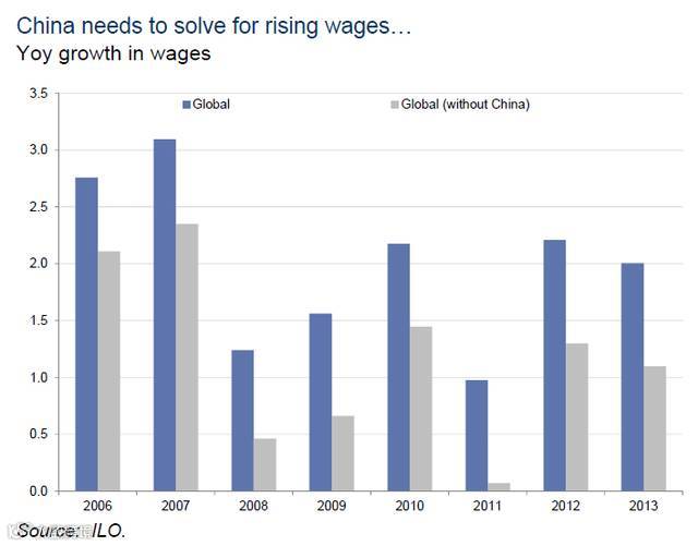 这使得中国薪资增长成为全球主要动力: