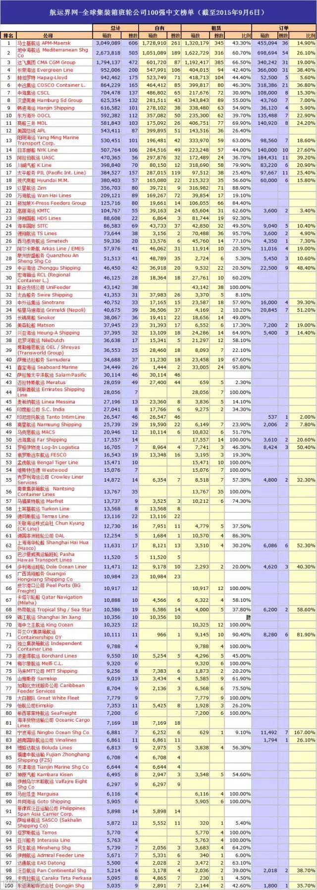 做大宗贸易必看:最新全球集装箱班轮公司100强