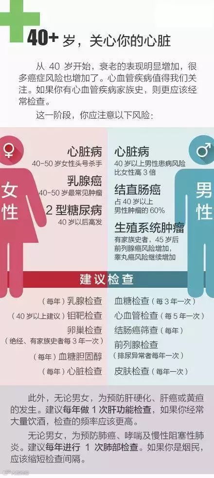 导读:“ 定期体检非常有必要,了解适合自己年龄的重点体检项目更重要!20-65岁,不同年龄段的体检建议送给