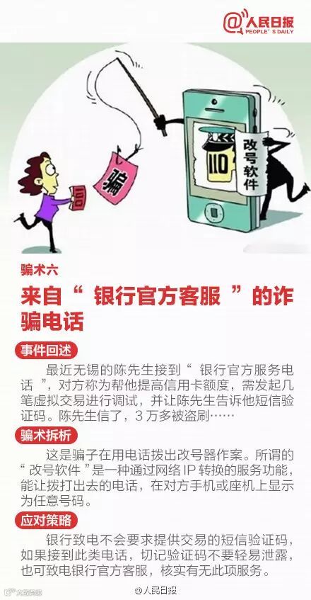 近日,江苏无锡陈先生接到“银行客服”的电话,以升级信用额度为由,要他提供验证码,陈先生信了,3万多元被盗刷…实际上这是骗子利用“改号软件”作案。除此之外,利用伪基站发诈骗信息、张贴虚假“罚单”…骗术不断“升级”,你要时刻警惕!戳图了解9种最新骗术↓别上当!