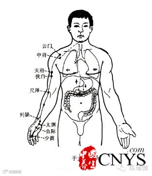 从肩胛骨凹陷处连出一条直线,沿着手臂内侧,到拇指内侧端止,为人体肺经。“肺主皮毛”,经常敲打肺经的同时,保证每天至少1500毫升的进水量,就能使水分通过肺经运转到真皮层,使你的皮肤不再干燥!