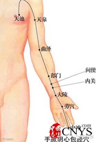 从乳头外侧一寸的天池穴开始,到中指指尖末端,为心包经。心包经的始端在心脏外围,中医所说的心包就是心脏外面的一层薄膜,当外邪侵犯时,心包挡在心脏前面,起到一定保护作用。