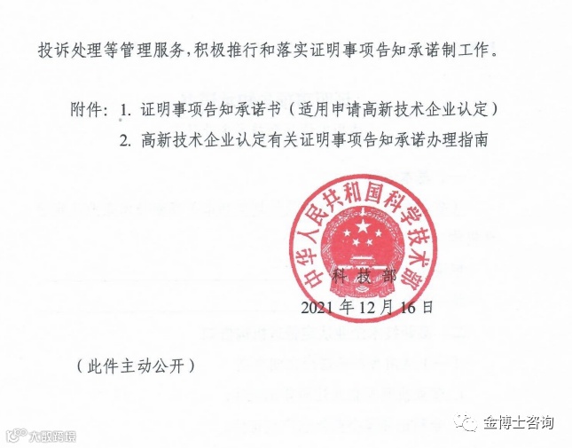 科技部关于高新技术企业认定有关证明事项实行告知承诺制的通知