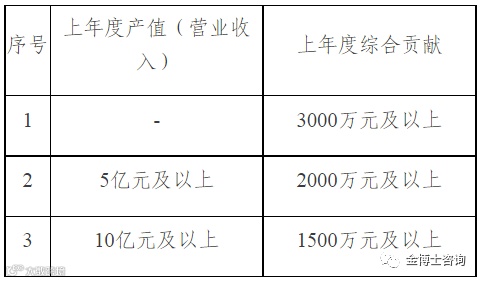 4.在福田区持续经营1年(含)以上,上年度在福田区的综合贡献及纳入福田区统计核算的产值规模(营业收入)符合下列条件之一的: