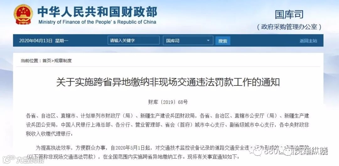 近日,财政部、公安部、中国人民银行联合下发《关于实施跨省异地缴纳非现场交通违法罚款工作的通知》,自今年5月1日起,非现场交通违法罚款,可在全国范围内跨省异地缴纳。