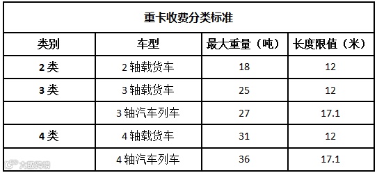 其中,《收费公路车辆通行费车型分类》标准,在5月底正式颁布,并且将会在今年的9月1日正式实施。在此之前,货车是按照“核定载质量”分类,现改成按照总轴数分类,并把蓝牌货车同其它两轴货车分成了两类——蓝牌货车为1类,其它两轴货车为2类。同时,明确规定,要同步实施封闭式高速公路收费站入口不停车称重检测。