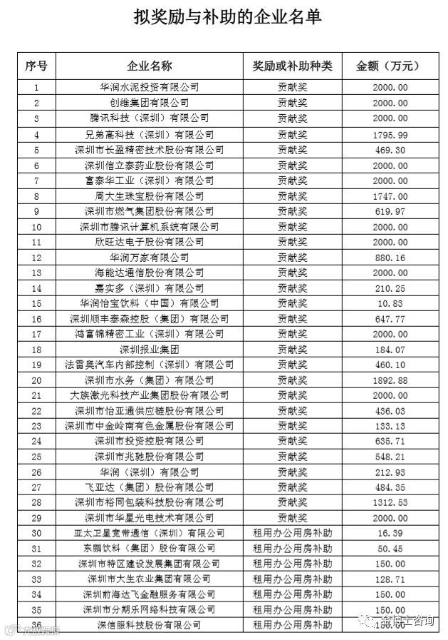 根据《深圳市鼓励总部企业发展实施办法》(深府规〔2017〕7号)有关规定,我委组织开展了总部企业奖励与补助的申报核算工作。经发布通知、申报受理、材料审核、数据核算等程序,现将拟奖励与补助的企业名单(详见附件)予以公示,任何单位和个人对公示名单有异议的,请在公示发布之日起5个工作日内以书面形式(注明通讯地址和联系方式)向我委提出。单位提出异议的,请在异议材料上加盖本单位公章;个人提出异议的,请在异议材料上签署本人的真实姓名(姓名不能打印),我委对异议人身份和反映情况予以保密。