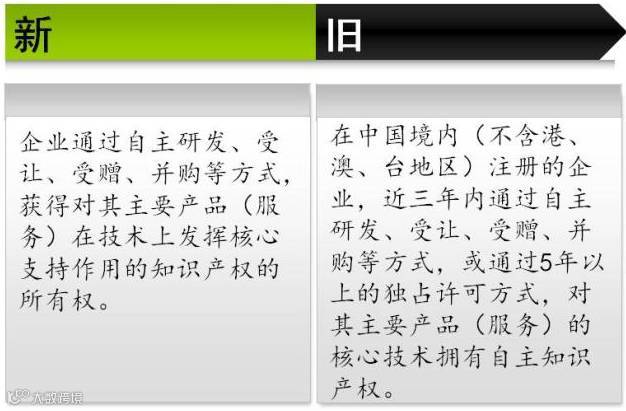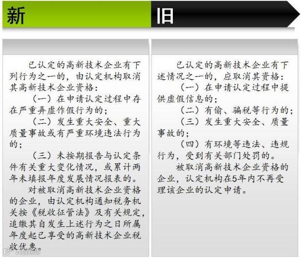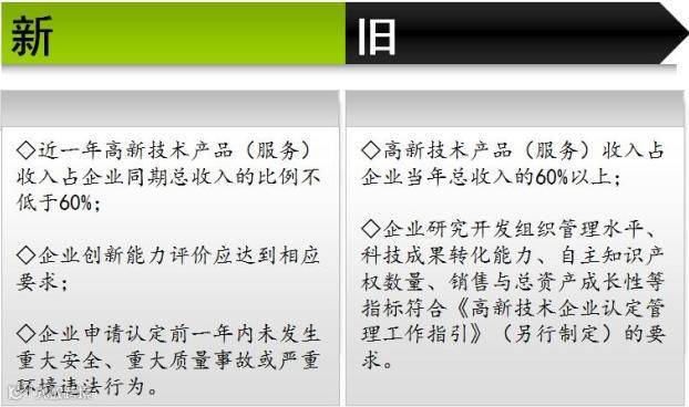 金博士咨询2016年1月29日,科技部、财政部和国家税务总局联合发布新修订的《高新技术企业认定管理办法》(国科发火[2016]32号),面向中小企业降低了高新技术企业的认定门槛,加大对科技企业的普惠性政策扶持,促进经济结构的转型升级。同时,高新技术企业在进行企业所得税年度申报时的备案管理也有所变化。下面,小编为您将变化点一一道来。