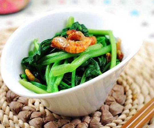 做法:海米50克、油菜200克、鸡汤少许、盐、味精等调味品。油菜洗净切长段,用油炒。再放入温水发透的海米,加适量鸡汤炒熟,加盐、味精,勾芡即可食用。