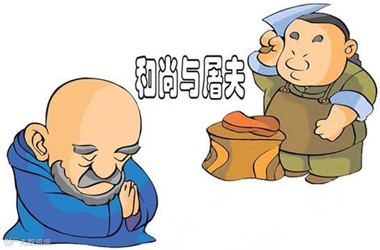 多年以后,和尚与屠夫相继去世了。屠夫去上天堂了,而和尚却下地狱了。