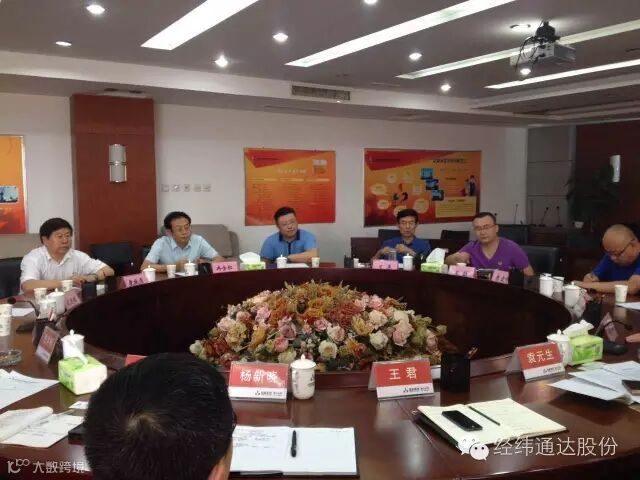 7月21日上午,山西煤炭运销集团港口贸易有限公司与山西经纬通达股份有限公司在太原山煤集团8层会议室召开煤炭贸易物流合作座谈会,就双方合作事宜进行探讨,与会人员有山西煤炭运销集团港口贸易有限公司董事长袁元生、副总经理王君、副总经理高山、会计师杨晓新等,山西经纬通达股份有限公司董事长冉金红、战略顾问王丰、董事长助理王敏、副总经理康振清、武进雨、郝建英等。