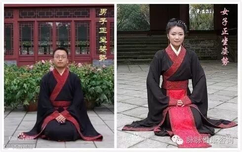 跪坐(正坐)是华夏古人的传统坐姿,正确的跪坐姿势优雅,体现出中华文明端庄和谦恭的仪态。历史上先秦汉唐的人们身穿宽大飘逸的服装跪坐于地,有一种大气的美韵。从“促膝谈心”和“举案齐眉”等成语,也可看出古人的文化。跪坐不仅体现出一种修养和风韵,从养生角度看,对人体健康也大有益处。