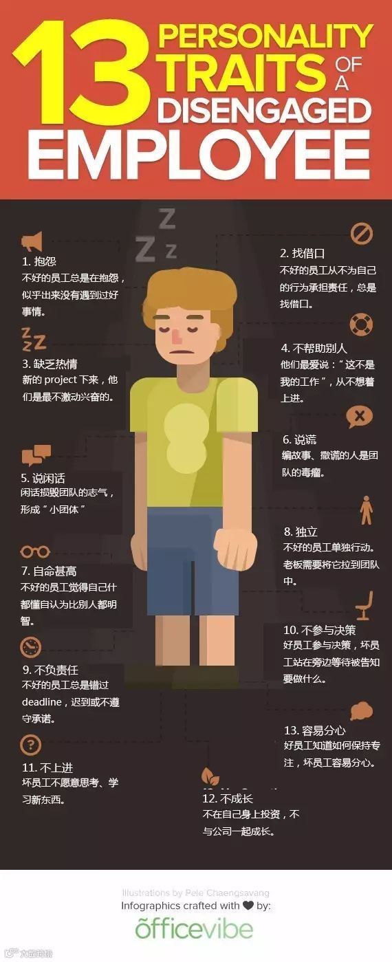 以下13个性格特点从某种程度上能够暴露出员工是不是不投入的人。