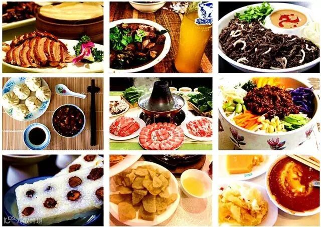 在北京到处都有美食。涮羊肉、烤鸭、卤煮、爆肚、炸酱面、炒肝、炸灌肠、褡裢火烧、驴打滚、艾窝窝、豆汁儿、焦圈、芸豆卷、酸梅汤、冰糖葫芦、糖卷果、麻豆腐、羊肉汆面、姜汁排叉、撒子麻花、烤肉、烧麦……