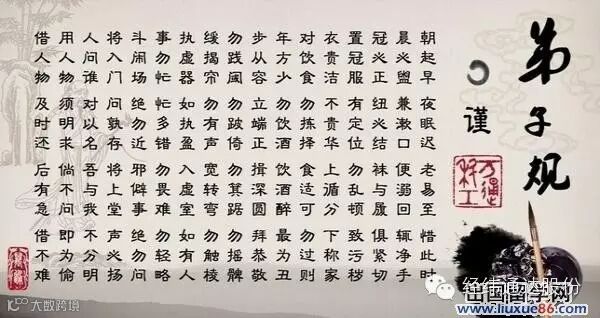 《弟子规》是一部成书于清朝并且被广为流传的一种儿童启蒙的读物,其主要目的就是对孩子进行启蒙教育,为将来的成长与发展奠定一定的基础。它采纳《论语·学而》篇中“弟子入则孝,出则悌,谨而信,泛爱众,而亲仁,行有余力,则以学文”的文意,并且加以引申扩展,以三字为一句,两句为一韵的形式进行论述,阐释了“弟子”在家、在外、待人接物、为人处世、求学等方面所应具备的一些礼仪与规范。下面的弟子规全文是由出国留学网范文频道的小编精心为大家整理的。欢迎大家阅读。更多优秀的范文敬请关注出国留学网。