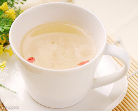 做法: 先将银耳洗净加水与冰糖(勿用绵白糖)炖熟;再将茶叶泡5分钟,取汁和入银耳汤,搅拌均匀即可饮用。
