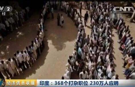 【看看印度求职,还是把辞职信偷偷撕了吧…】近日,印度北方邦政府面向社会招聘368个工作岗位,都是负责端茶倒水、传递文件等打杂的简单工种,薪水也不高。但令招聘方意想不到的是,竟有超过230万人应聘,相当于6000多人竞争一个岗位,招聘方表示,想把这230万应聘者全都面试一遍,可能得用上4年时间…