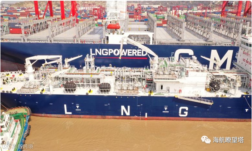 此次“达飞希米”号集装箱轮计划在洋山港靠泊24小时,加注7000立方米LNG燃料。船舶靠泊码头,在加注LNG的同时进行集装箱装卸作业,既保持码头泊位高利用率,又为船舶节约了燃料加注时间,有利于进一步维护产业链供应链稳定,提升港口综合竞争力。同时,有助于完善上海港的配套服务功能,促进船舶能源低碳转型发展,提升上海国际航运中心的综合竞争力。