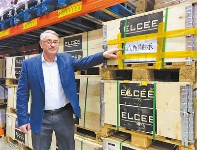 荷兰GVT物流集团总经理罗兰德·韦巴克介绍从中国运来的货物。
