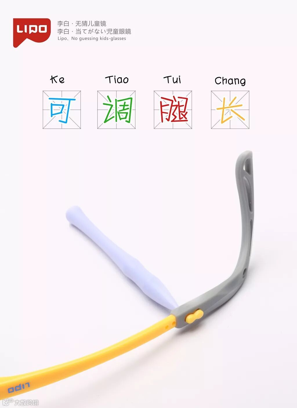 适合儿童的眼镜设计,镜腿应该服帖于脸侧皮肤,或者留有一点点空的余地,避免因儿童发育过快,眼镜没戴多久就太小了。最好是能够调节的,可以根据头型调节镜腿的长度,也减少了眼镜的更换频率。