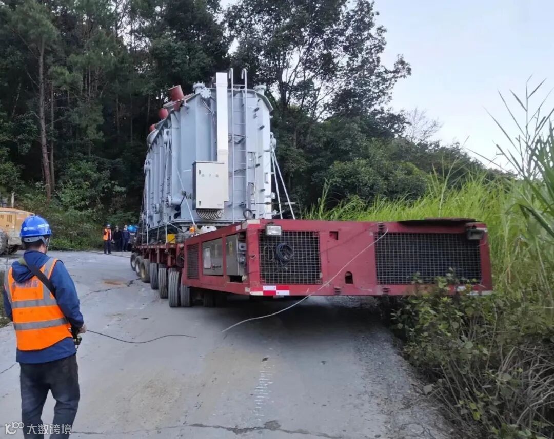 云南华电临沧耿马周家寨光伏项目地处临沧市耿马县大兴乡周家寨村,因项目工期紧、业主交付时间短,需全力保证安全将7.2米长、4米高、重逾85吨的两台套主变压器在规定工期内运至工地现场。因该项目位于茶叶产区,包括红线问题及征地难度问题,运距约15公里的山路运输过程中,涉及道路狭窄陡峭、弯道多且有多于6处的回头弯,坡度最大为18°;以及过村道路电力线缆低矮杂乱、村镇路面维修等,导致变压器运输面临巨大的困难。