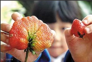 2.催红草莓红得均匀,只要沾着催红素的地方,都会变红,而正常的草莓红得不均匀;