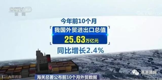 前10个月,我国实现外贸进出口总值25.63万亿元,同比增长2.4%,其中出口13.99万亿元,增长4.9%。在全球贸易投资低迷的大背景下,面对充满挑战和不确定性的发展环境,我国进出口规模总体平稳,结构继续优化,质量稳步提升。