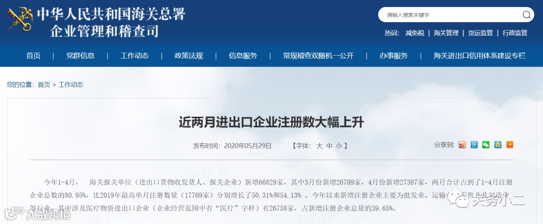 其中涉及医疗物资进出口企业(企业经营范围中有“医疗”字样)有26758家,占新增注册企业总量的39.65%。
