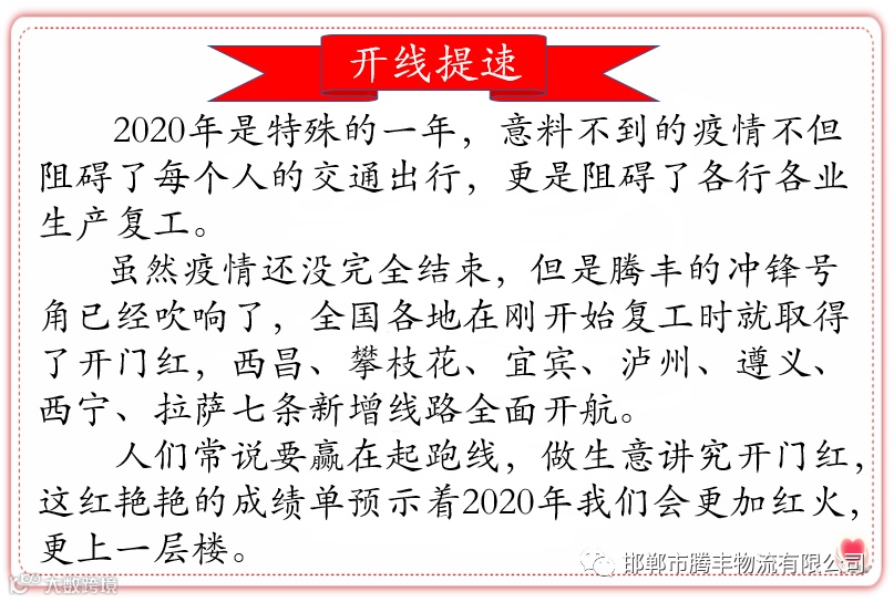 导读:腾丰物流| 开线 开线 再开线