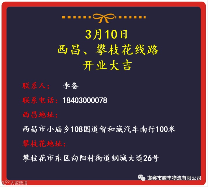 【腾丰物流】西昌、攀枝花线路3月10日盛大开业!